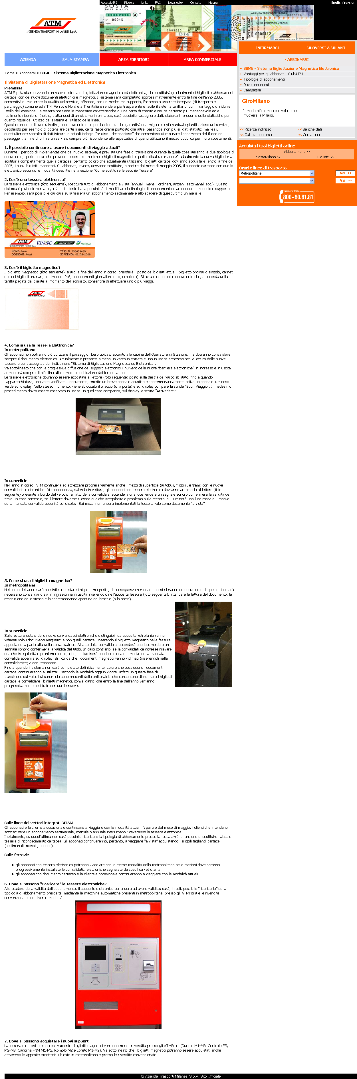 Migliaia di euro buttati perchè i dirigenti atm possano gustarsi dei magnifici grafici, comodamente seduti sulle loro calde poltrone di pelle nei loro magnifici uffici !!! (Nel frattempo il povero utente impazzisce per cercare di ricaricare il suo tesserino elettronico, visto che sono abilitate ad effettuare tale operazione solamente le edicole della metropolitana)