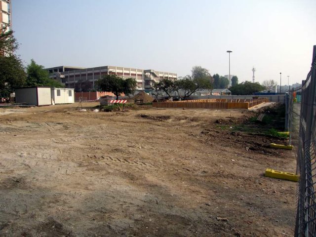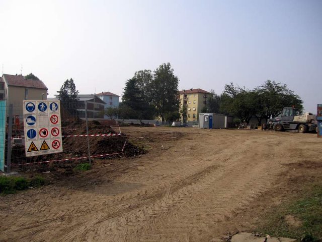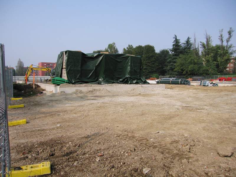 Questa foto invece l'ho inserita per farvi vedere un po' di verde... Il verde dei teloni che ricoprono il materiale del cantiere.